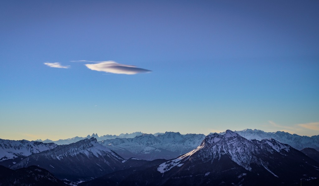 Clear sky over snowy mountains HD Wallpaper - 1024x600