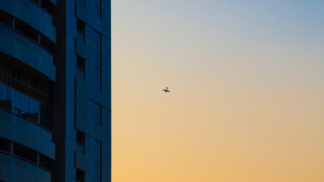 Plane flying next to skyscapers HD Wallpaper - iPhone 7 / iPhone 8