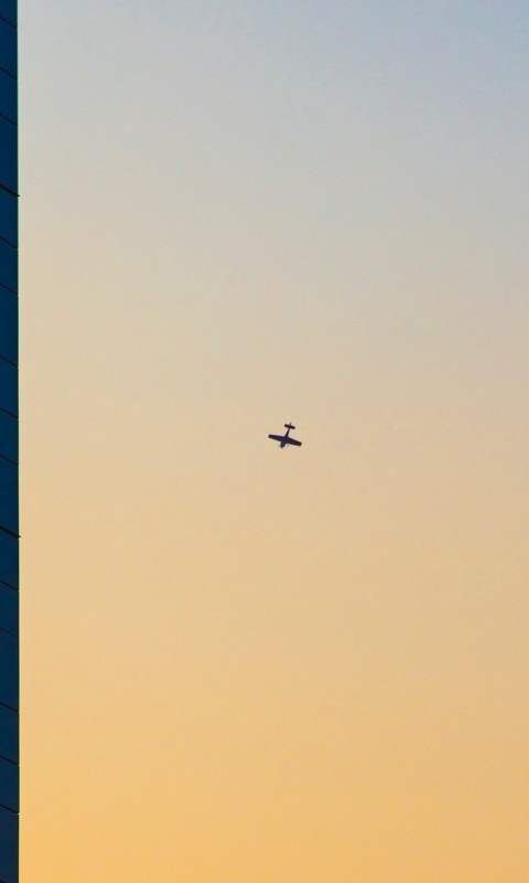 Plane flying next to skyscapers HD Wallpaper - 480x800