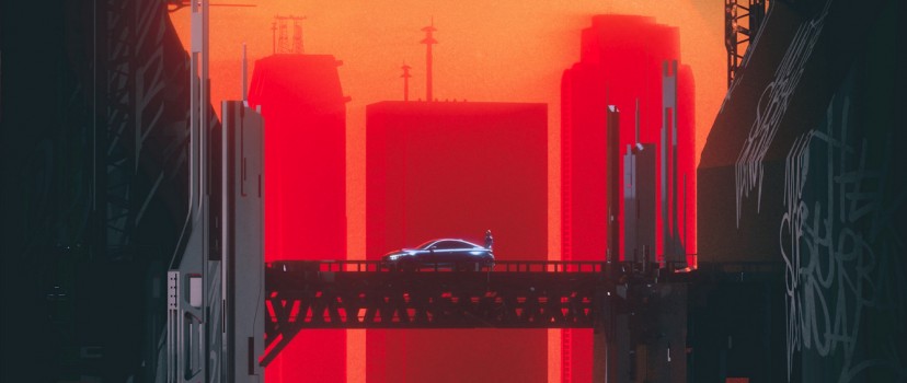Sci-fi car over the city bridge HD Wallpaper - Facebook Cover Photo