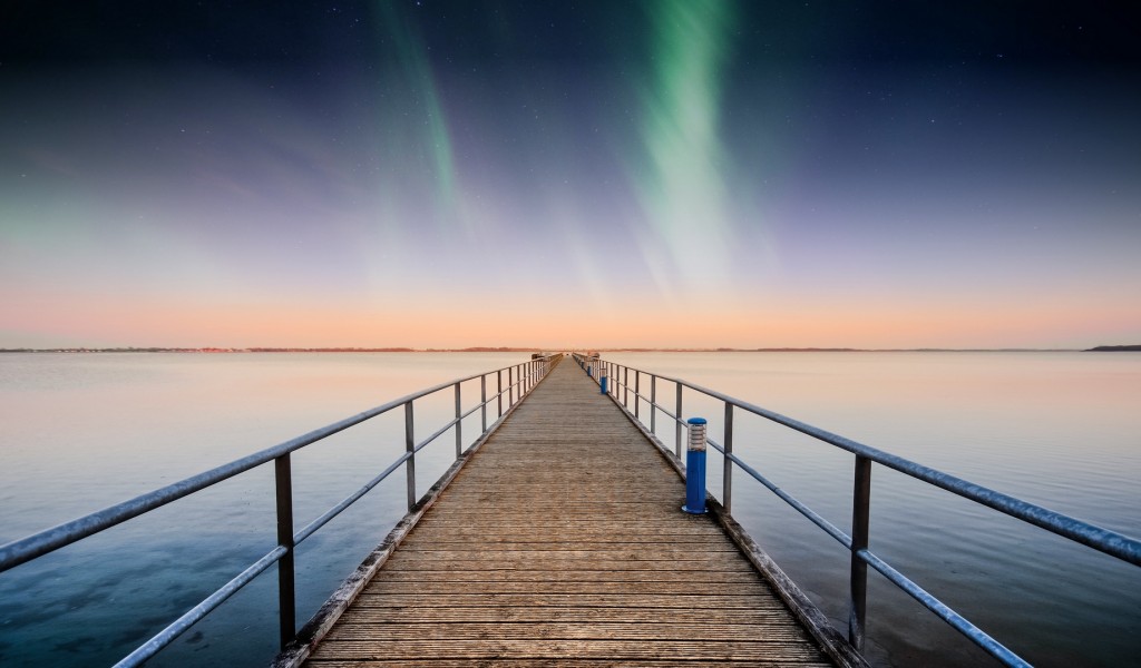 Starry sky over the pier HD Wallpaper - 1024x600