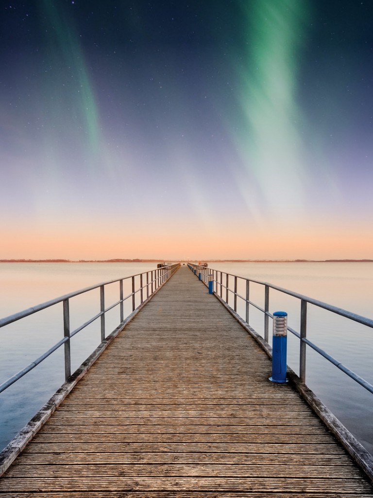 Starry sky over the pier HD Wallpaper - Non-retina iPad