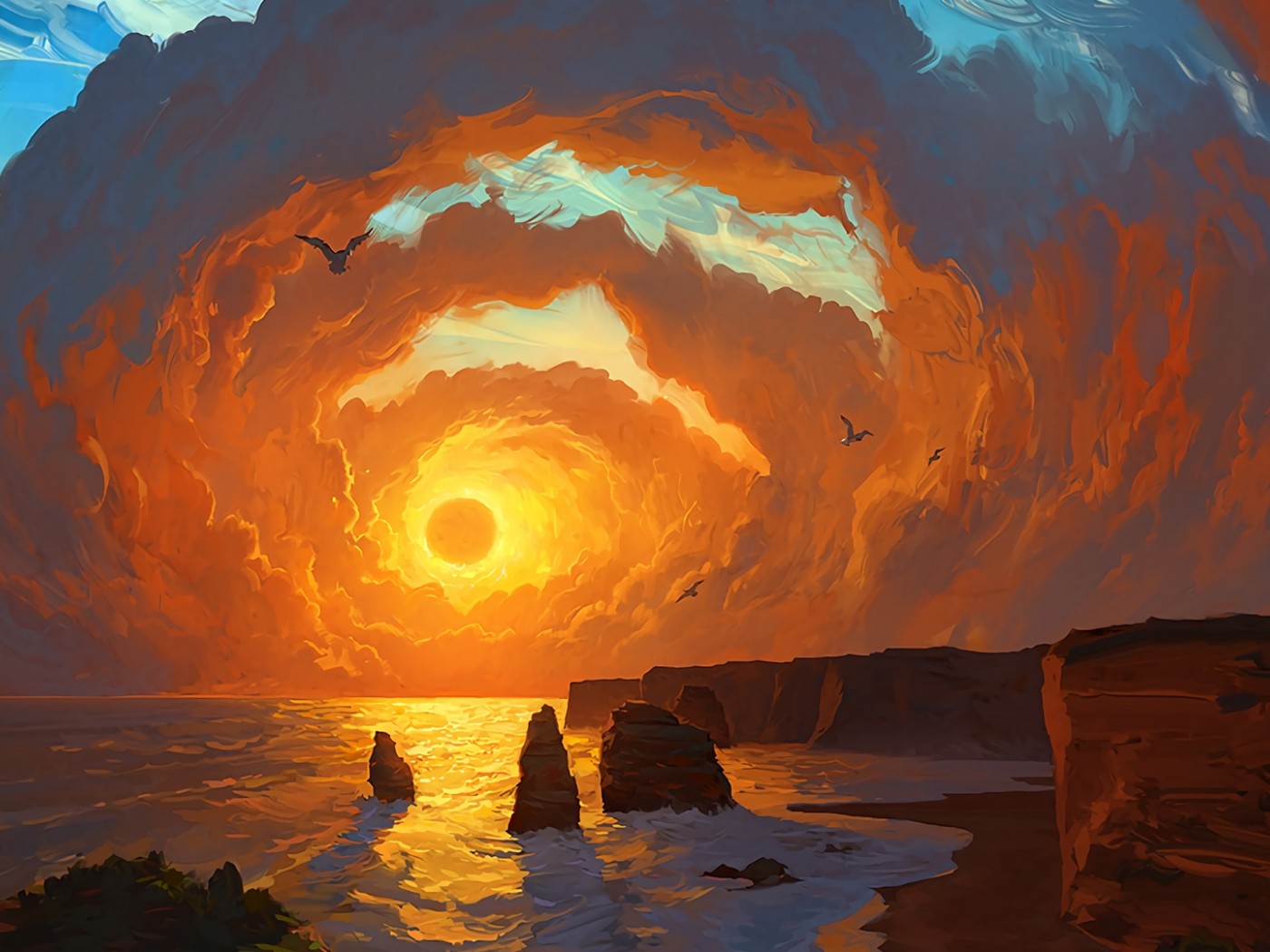 Sunset at the sea HD Wallpaper - 1400x1050