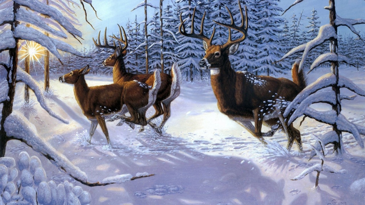 Deers in the snow HD Wallpaper - 1280x720 (720p)