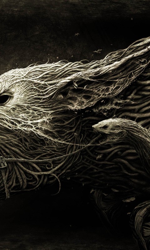 A114 Demonic Hound of Vines Black&White HD Wallpaper - 480x800