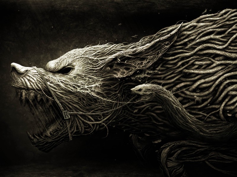 A114 Demonic Hound of Vines Black&White HD Wallpaper - 800x600