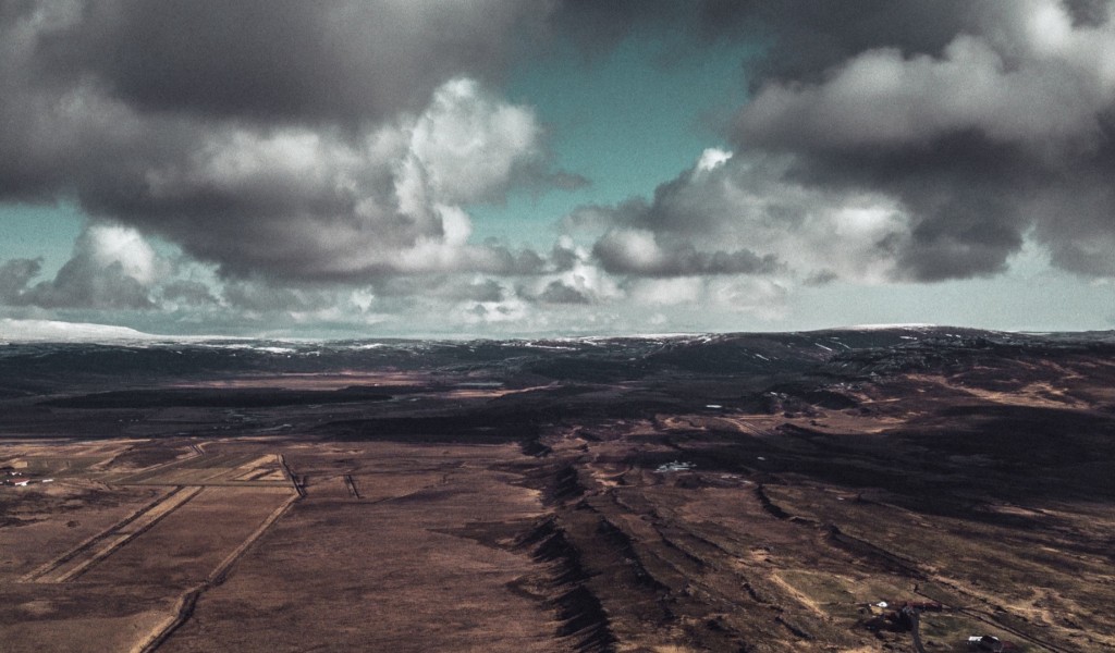 Aerial view of a cloudy landscape HD Wallpaper - 1024x600