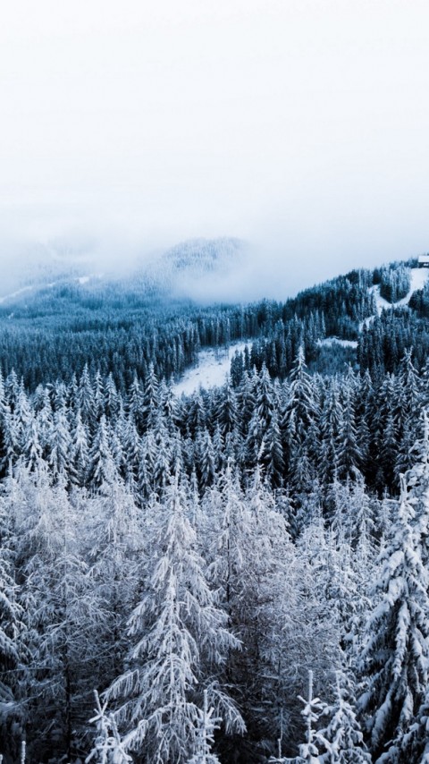 Aerial view of a forest at winter HD Wallpaper - 480x854