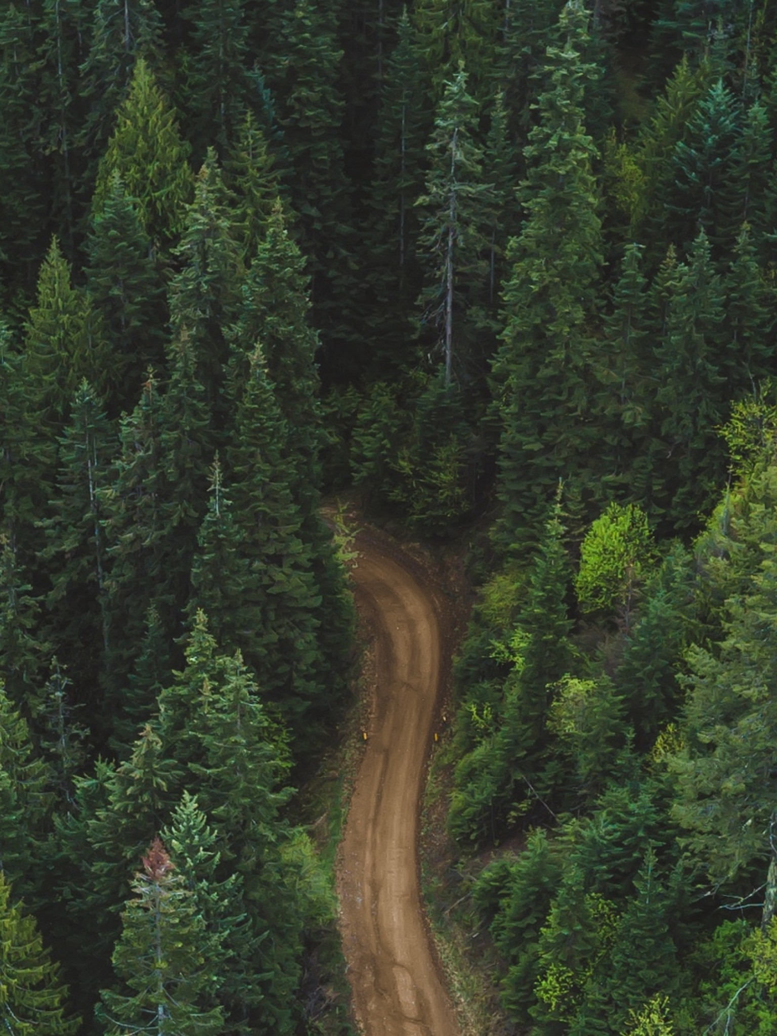 Aerial view of a road inside the forest HD Wallpaper - Retina iPad