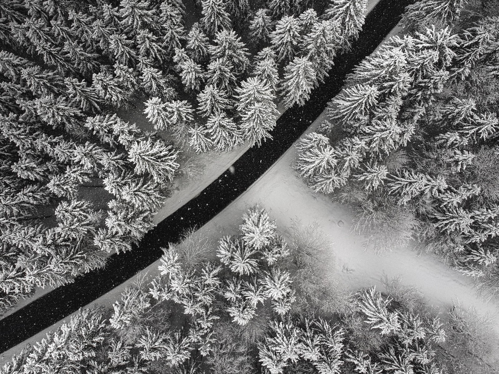 Aerial view of a snowy road HD Wallpaper - 1600x1200