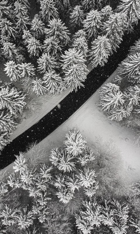 Aerial view of a snowy road HD Wallpaper - 480x800