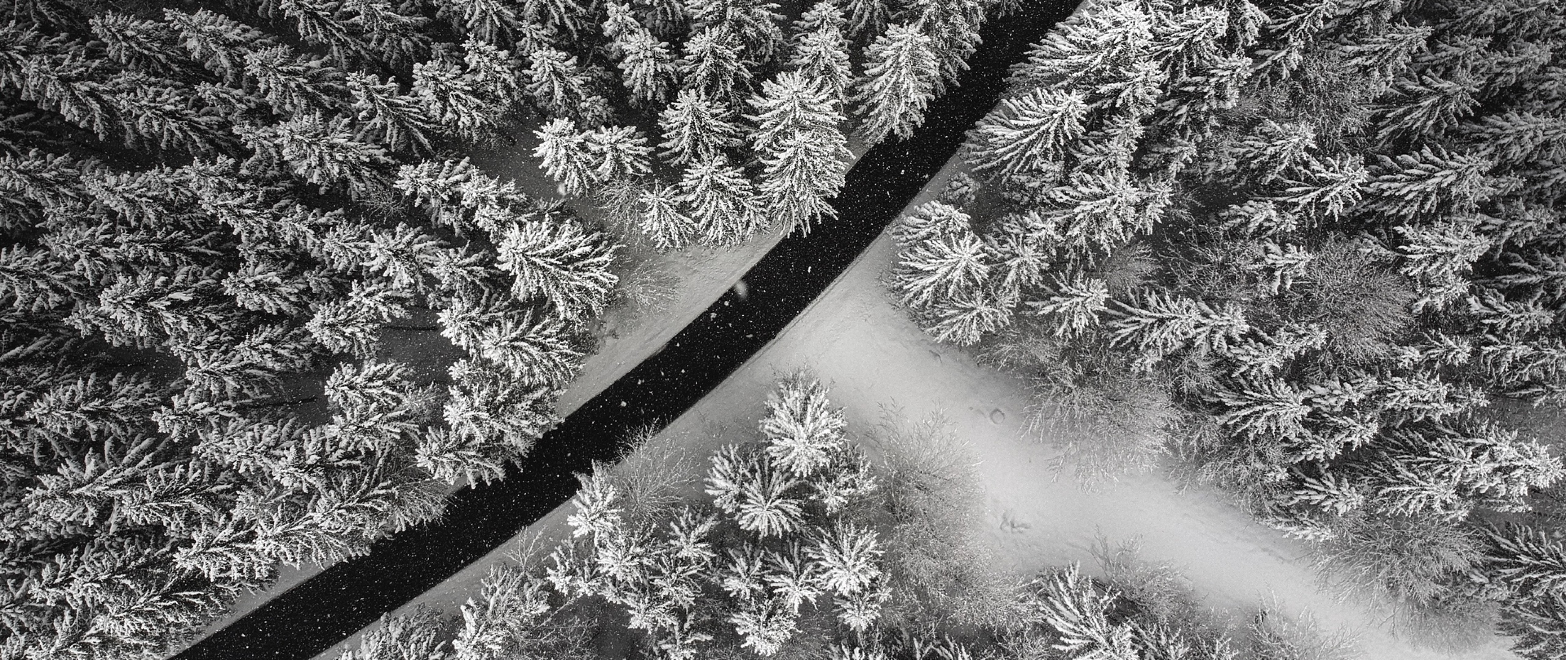 Aerial view of a snowy road HD Wallpaper - 4K Ultra HD Wide TV