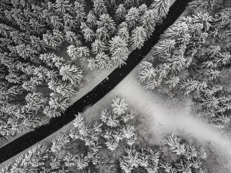 Aerial view of a snowy road HD Wallpaper - 800x600