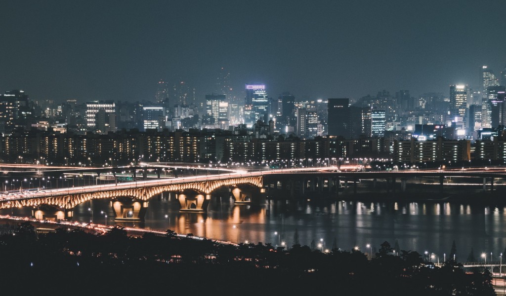 Aerial view of city lights HD Wallpaper - 1024x600