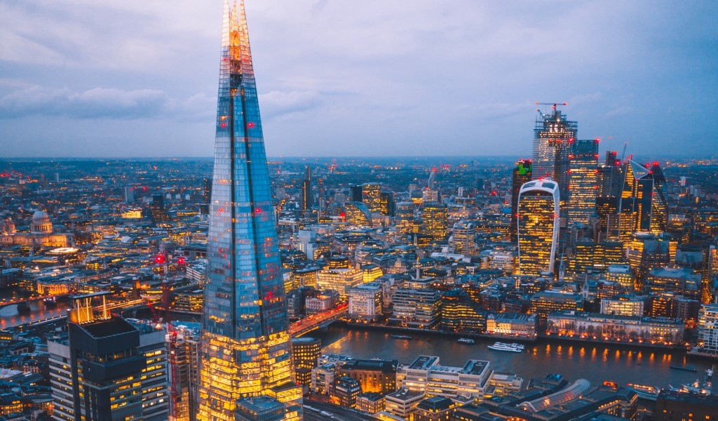 Aerial view of city skyscrapers HD Wallpaper - 1024x600