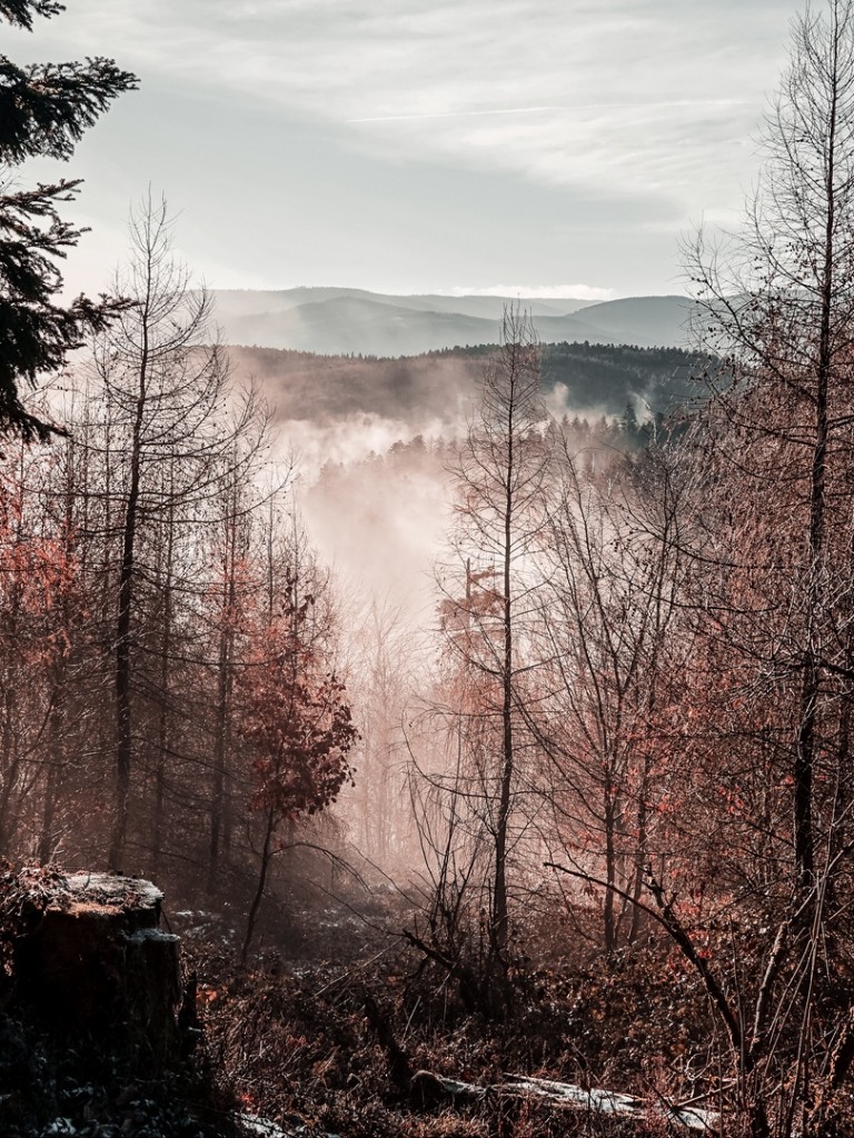 Aerial view of foggy mountain HD Wallpaper - Non-retina iPad
