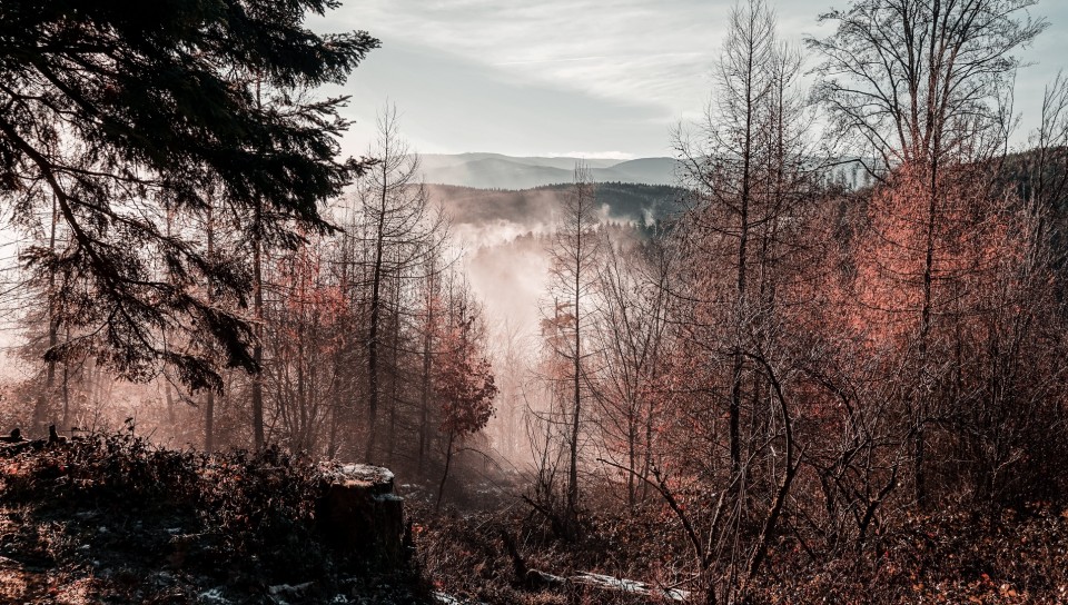 Aerial view of foggy mountain HD Wallpaper - 960x544 PS Vita