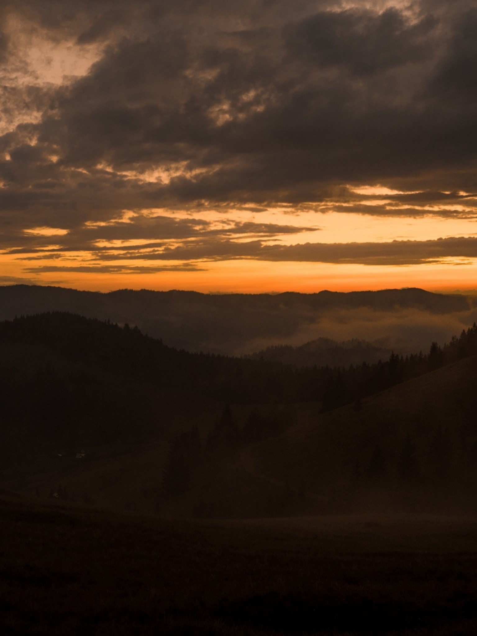 Aerial view of foggy sunset HD Wallpaper - Retina iPad