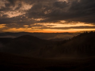 Aerial view of foggy sunset HD Wallpaper - 320x240