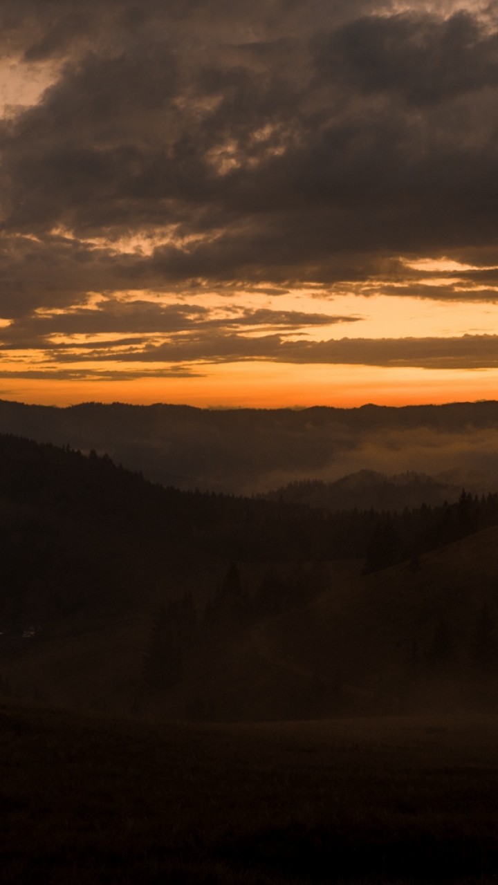 Aerial view of foggy sunset HD Wallpaper - 720x1280