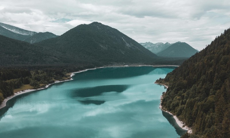 Aerial view of lake and mountains HD Wallpaper - 800x480