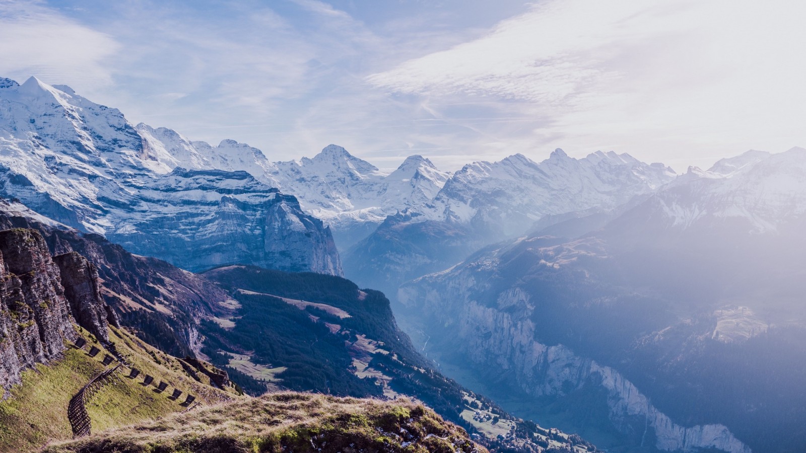 Aerial view of Switzerland's mountains HD Wallpaper - 1600x900