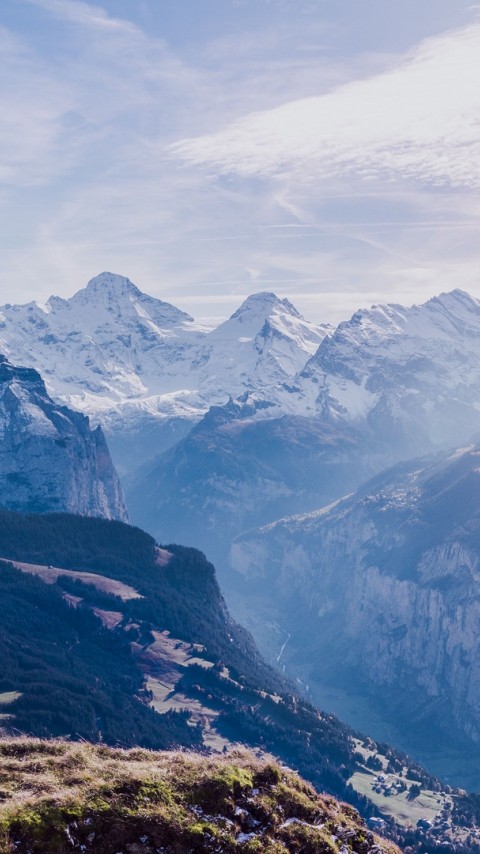 Aerial view of Switzerland's mountains HD Wallpaper - 480x854