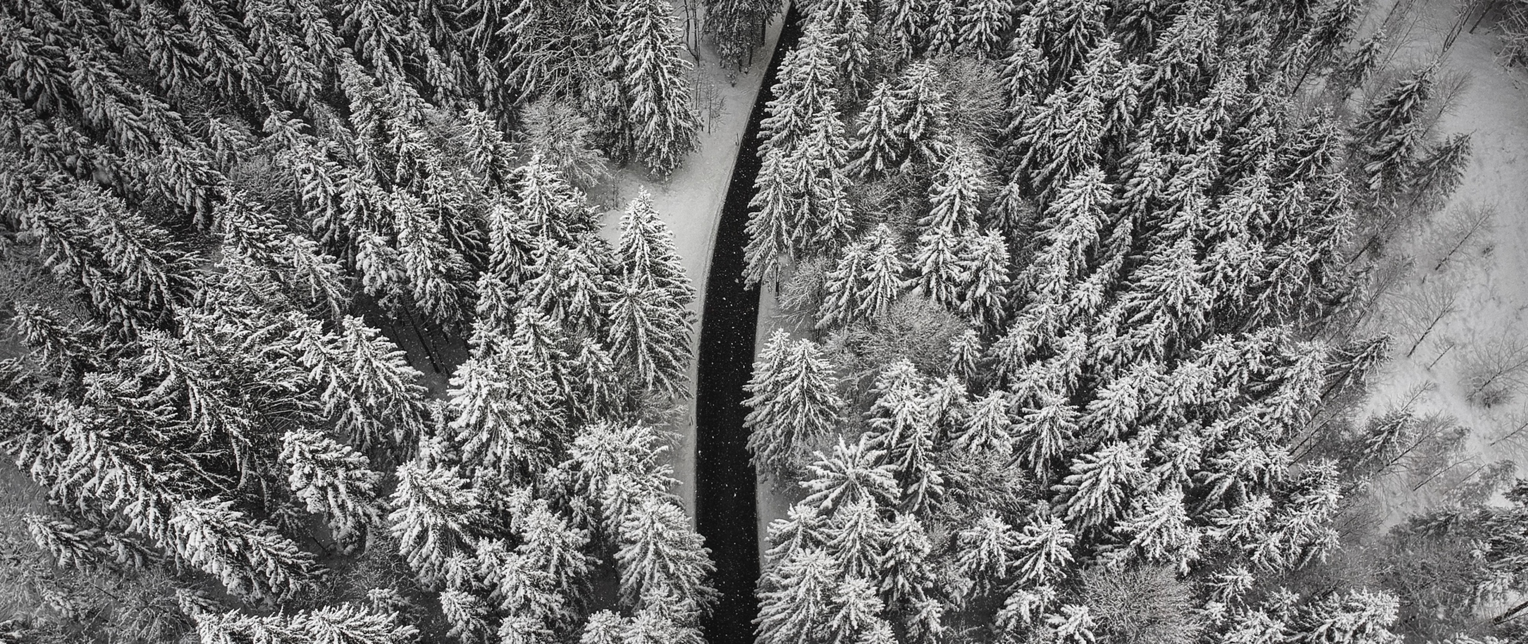 Aerial view of trees covered in snow HD Wallpaper - 4K Ultra HD Wide TV