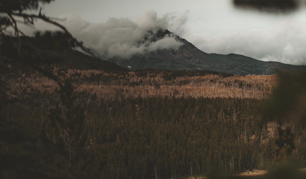 Aerial view over a foggy lake HD Wallpaper - 1024x600