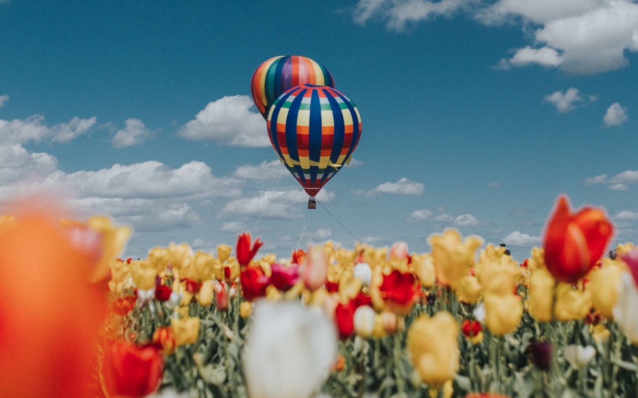 Air ballons over a field of tulips HD Wallpaper - 1280x800
