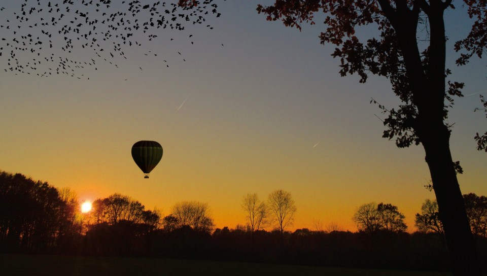 Air balloon flying at the horizon HD Wallpaper - 960x544 PS Vita