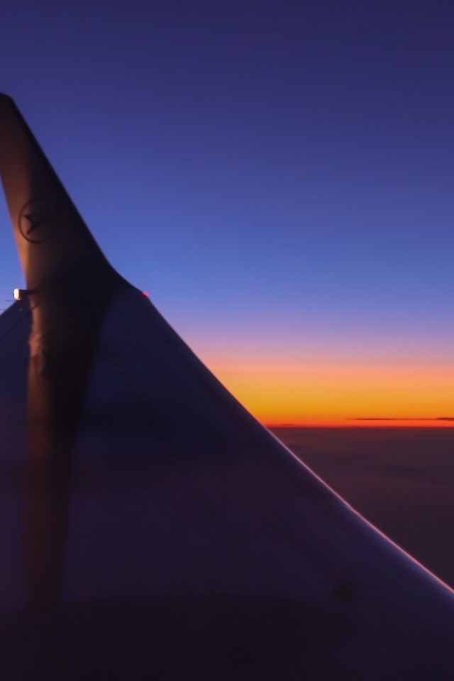 Airplane wing image during sunset HD Wallpaper - iPhone 4 / 4S / iPod