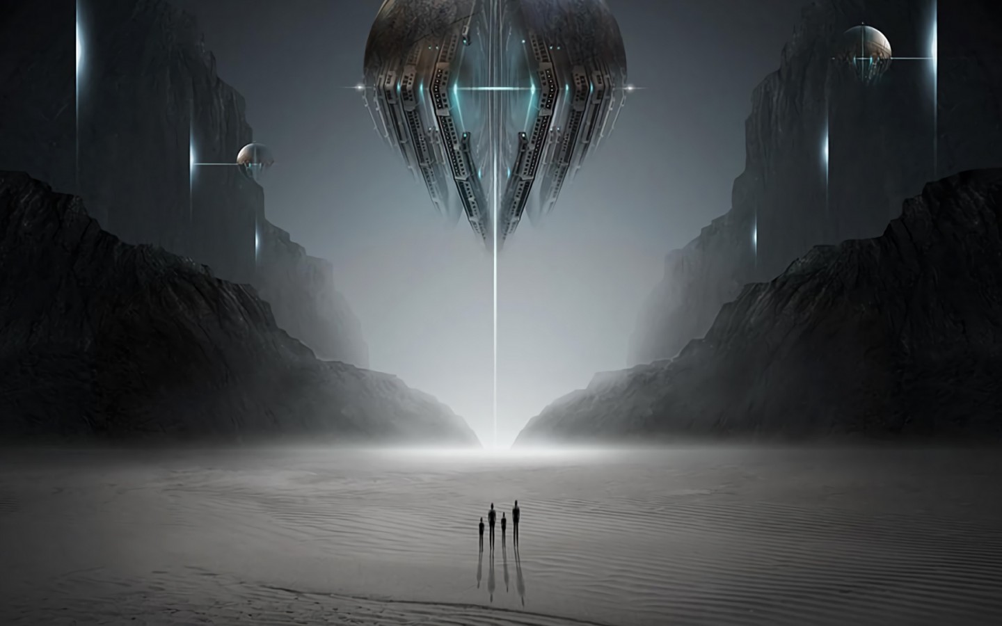 Alien silhouettes under UFO HD Wallpaper - 1440x900