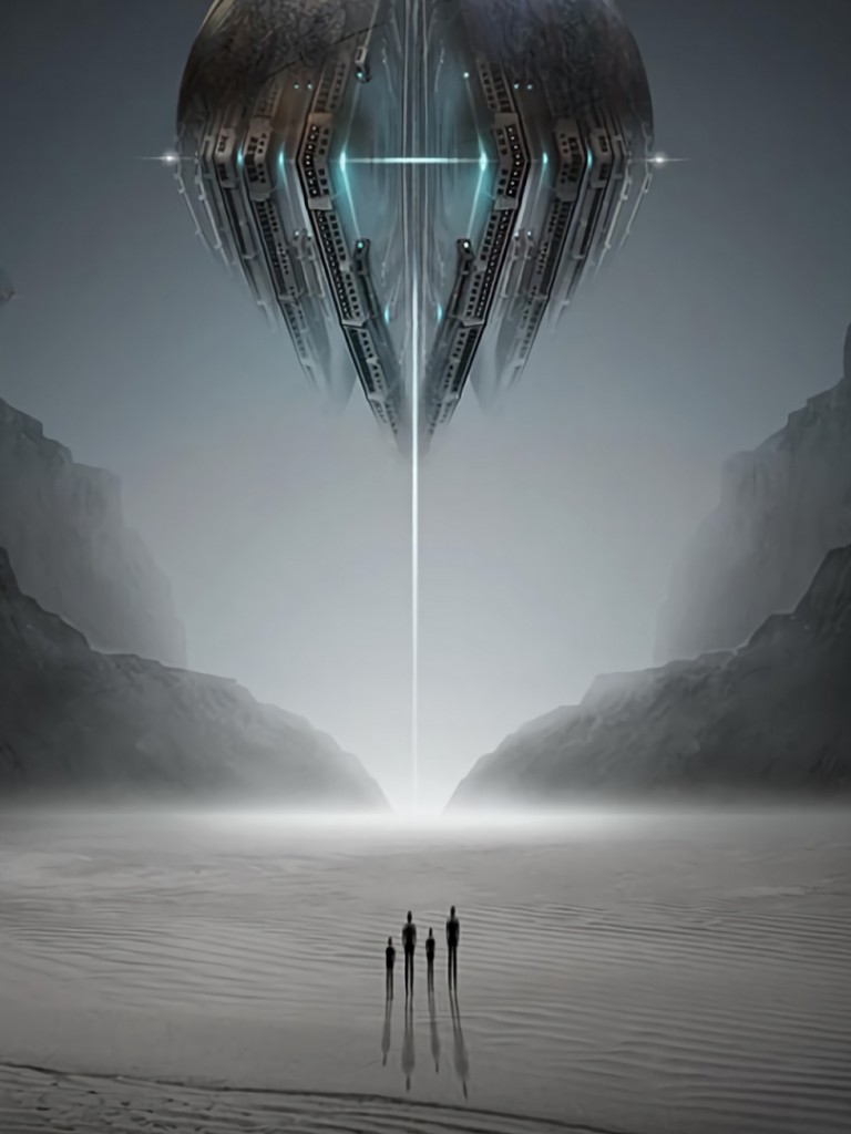 Alien silhouettes under UFO HD Wallpaper - Non-retina iPad