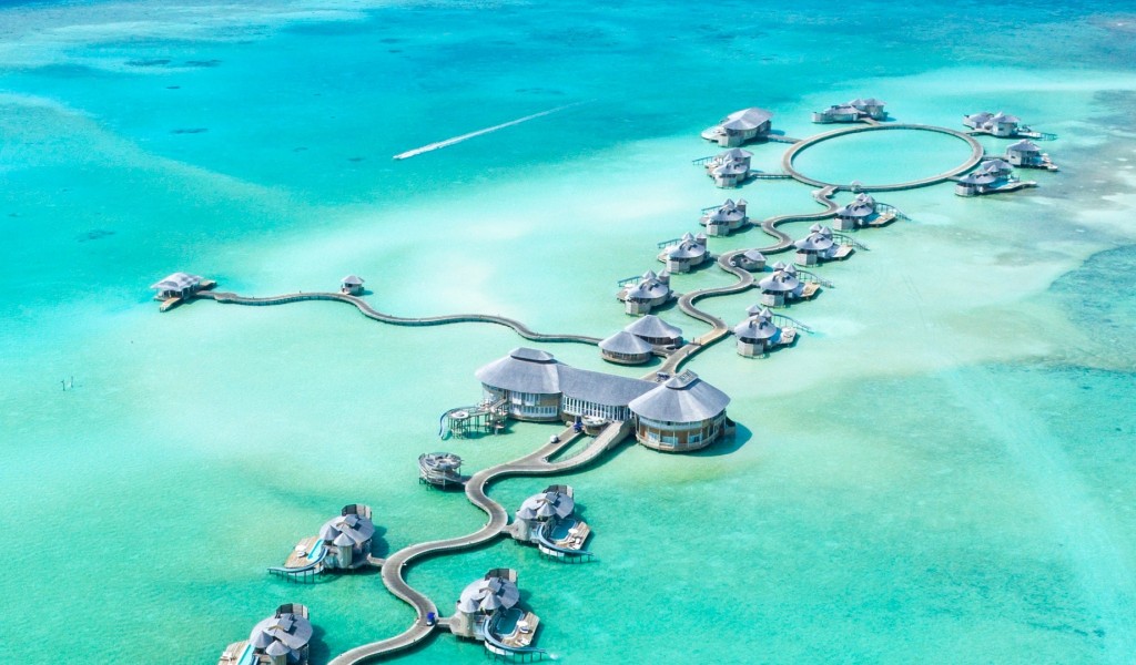 Amazing bungalows at Maldives HD Wallpaper - 1024x600
