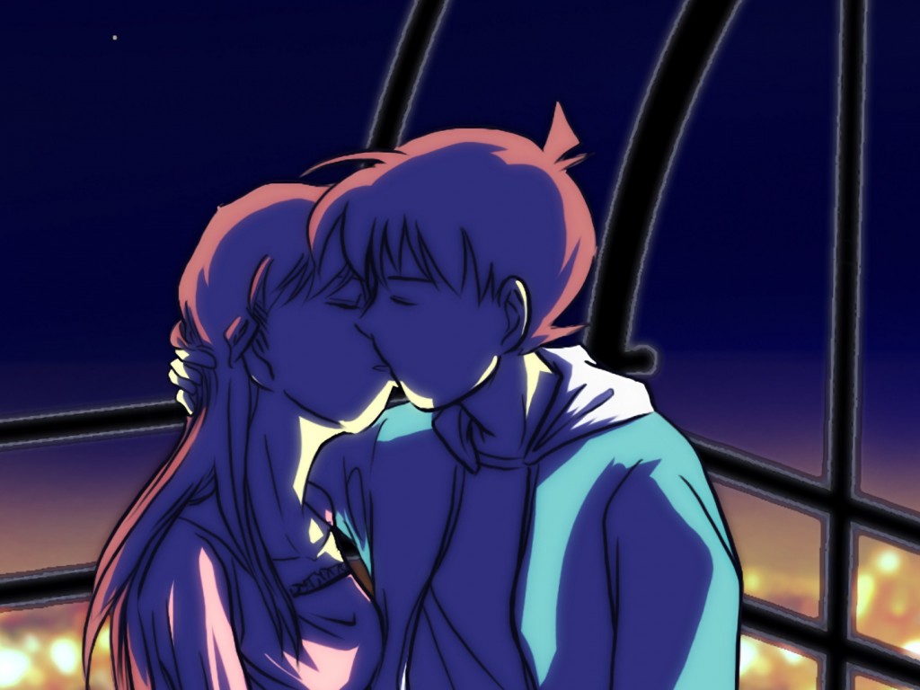 Anime cartoon couple kiss each other HD Wallpaper - 1024x768