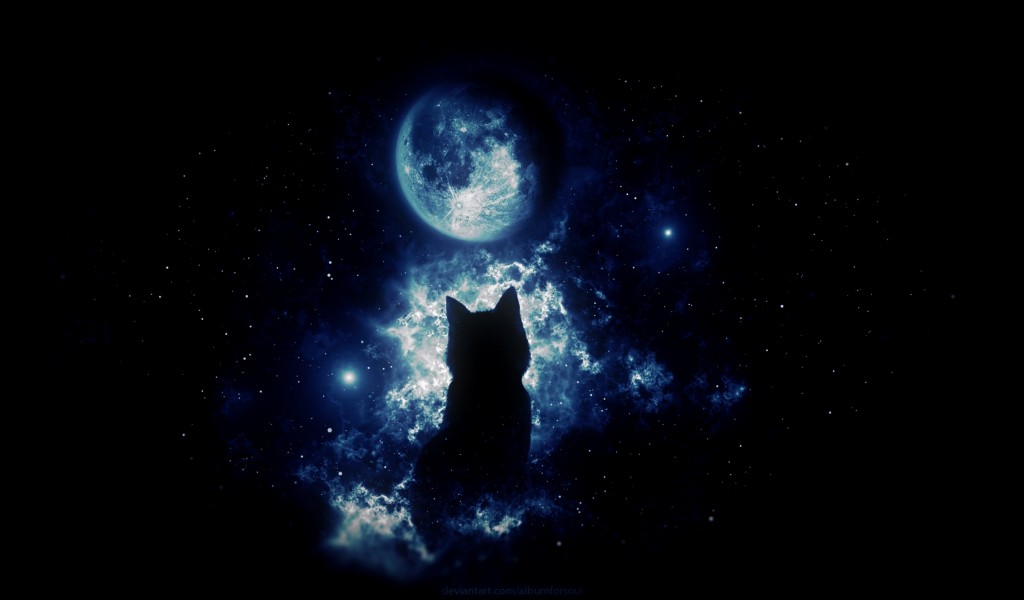 Anime cat staring at the moon HD Wallpaper - 1024x600