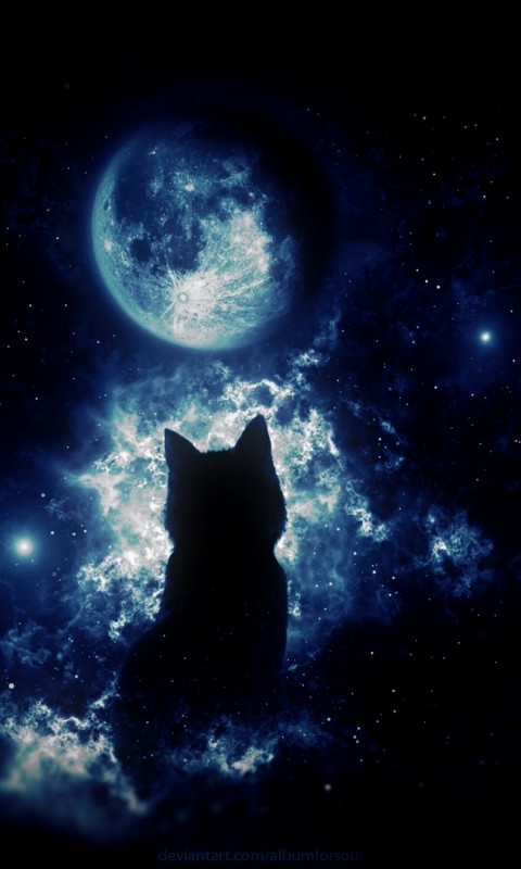 Anime cat staring at the moon HD Wallpaper - 480x800