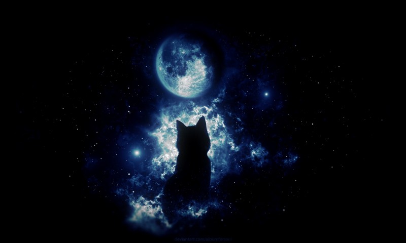 Anime cat staring at the moon HD Wallpaper - 800x480
