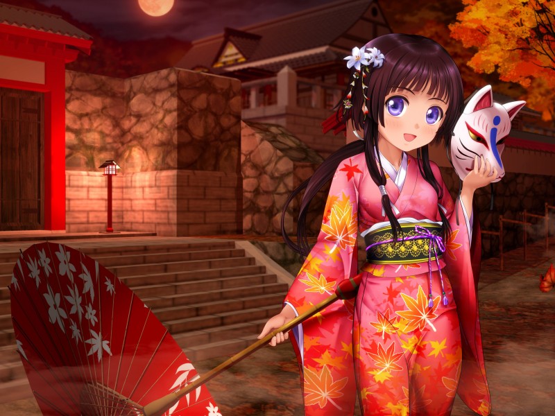 Anime Girl Kimono Umbrella Wallpaper for Desktop and Mobiles - 800x600
