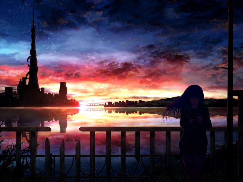 Anime girl watches the stars HD Wallpaper - 800x600