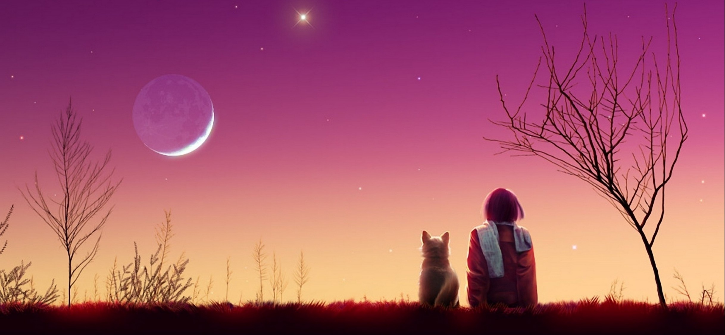 Anime girl watches the sunset with her cat HD Wallpaper - iPhone X