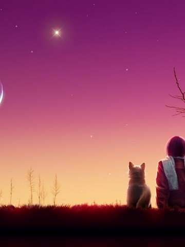 Anime girl watches the sunset with her cat HD Wallpaper - 360x480
