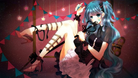 Anime girl with long blue hair and blue eyes HD Wallpaper - 480x272 PSP
