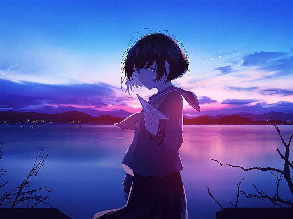 Anime school girl HD Wallpaper - 1024x768