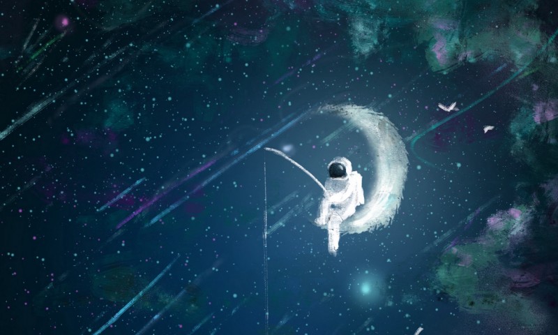 Astronaut fishing HD Wallpaper - 800x480