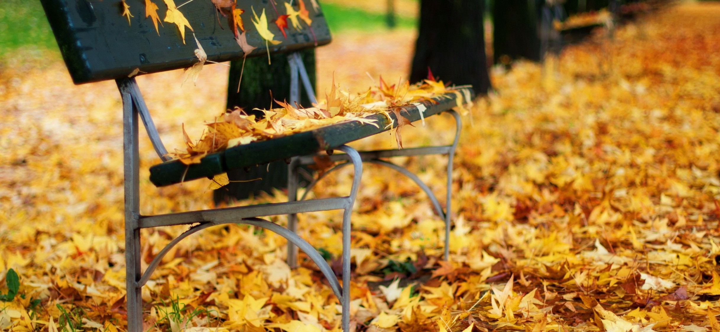 Autumn Leaves On A Park Bench HD Wallpaper - iPhone X