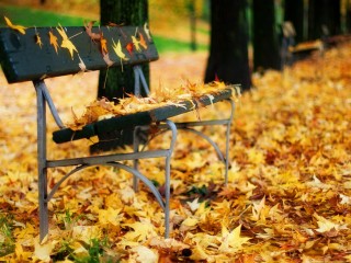 Autumn Leaves On A Park Bench HD Wallpaper - 320x240