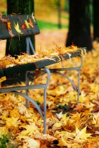 Autumn Leaves On A Park Bench HD Wallpaper - Older iPhone & iPod