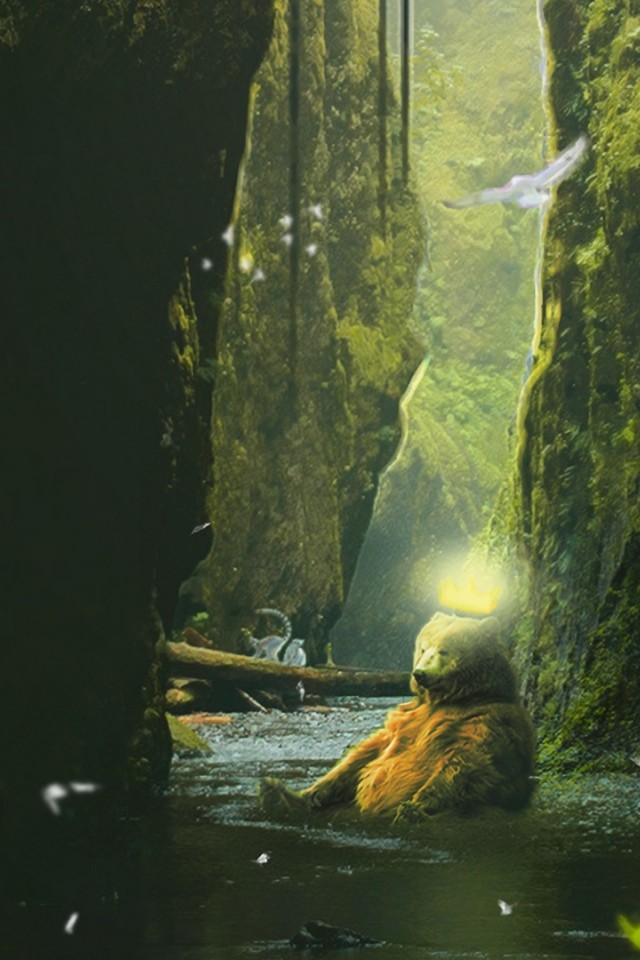 Bear sitting at a rock HD Wallpaper - iPhone 4 / 4S / iPod
